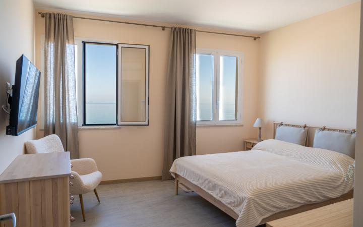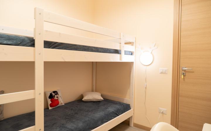 La zona notte si compone di tre comode camere da letto, di cui due camere matrimoniali ed una cameretta con letto a castello. Inoltre è presente un divano letto. Una delle camere matrimoniali dispone di bagno privato. Sono dotate di aria condizionata e finestre. L'immobile può ospitare fino ad otto persone.